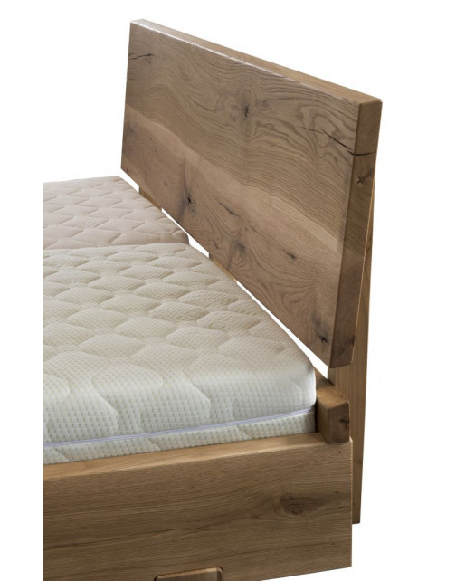 DUB RUSTIK sa vyznačuje vybratými vláknami pre dosiahnutie rustikálneho vzhľadu materiálu - výrazná až hrubá textúra dreva, malé aj veľké vrastené hrče, otvorené praskliny. Tento materiál je vhodný pre výrobu exkluzívneho nábytku a interiérov, kde je požadovaný rustikálny vzhľad a neopakovateľnosť kresby. Každá doska dubovej dvojlôžkovej postele je nenapodobiteľný unikát. Hrúbka dubového masívu je 40 mm. Naturálny povrch bez umelého lesku, jemnosť a odolnosť dodá drevenej posteli olejovosková povrchová úprava. Jedinečnú posteľ z masívu ARIANNA ponúkame len v limitovanom počte.