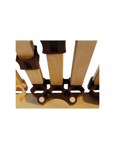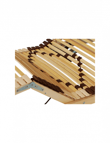 Vysoko kvalitný elektrický lamelový rošt do postele TRIPLE NATUR MOBIL T12 s motorovým polohovaním časti pod hlavou a časti pod nohami je tvorený 42 lamelami, ktoré zaisťujú dobrú vetrateľnosť, odvod vlhkosti a rovnomerné rozloženie váhy. 12 zdvojených lamiel s posuvnými opaskami umožňuje regulovať tuhosť a tým aj tlak vytváraný na matrac v bedrovej oblasti. Posúvaním opaskov je možné tvrdosť matraca buď zvýšiť alebo znížiť. Pružné lamely uložené v trojiciach v kaučukových púzdrach sú rozložené do 7 anatomických zón. Stredový spevňujúci textilný popruh zaisťuje pevnosť roštu a bráni prelomeniu lamely pri extrémnom bodovom zaťažení. Prídavná lišta na okrajoch roštu rovnomerne podopiera matrac aj na okrajoch pri nohách a v hornej časti matraca. Zamedzuje deformácii okrajov matraca a predlžuje jeho životnosť. Polohovateľný posteľný rošt ponúka nosnosť až 130 kg.