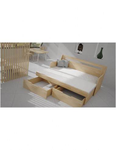Multifunkčná posteľ OTELA vyrobená z masívneho bukového dreva s hrúbkou 30 mm a univerzálnym použitím ako sedačka, jednolôžko alebo dvojlôžko.